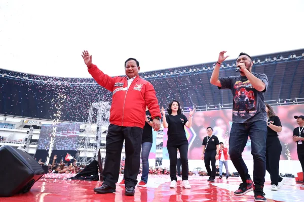Grace dan kader lainnya pun perlahan-lahan mendekati Prabowo, mereka berbaris di belakang Prabowo.