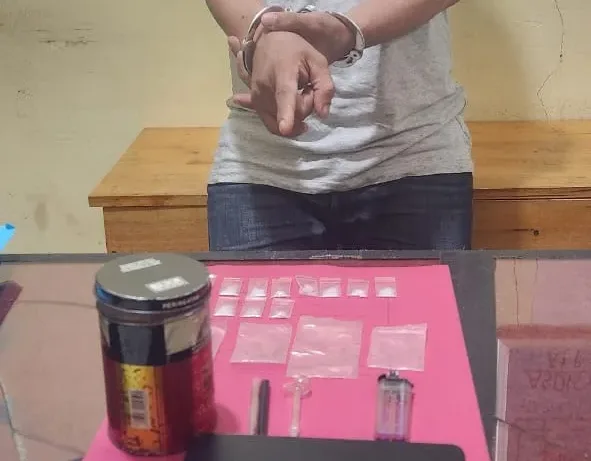 “Pelaku langsung kita ringkus dan saat dilakukan penggeledahan badan, tim menemukan 12 paket narkotika di saku celana belakang yang disaksikan oleh Ketua RW setempat,” tambah Kapolsek.