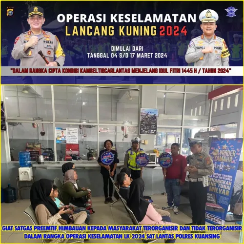 KUANSING – Satgas Preemptif Polres Kuansing melakukan kegiatan pemasangan stiker, spanduk dan penyebaran brosur serta penling dalam rangka operasi keselamatan Lancang Kuning tahun 2024. Jumat (15/3/2024).
