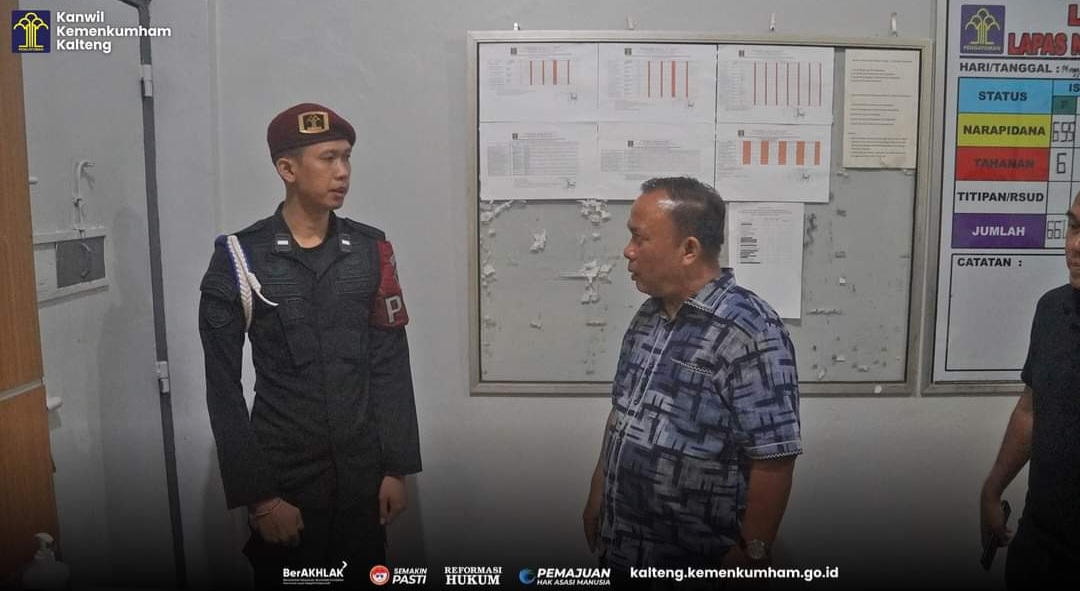 Kakanwil Kemenkumham Kalteng Maju Amintas Siburian, secara langsung meninjau kondisi dan situasi Lapas Khusus Narkotika Kelas IIA Kasongan.