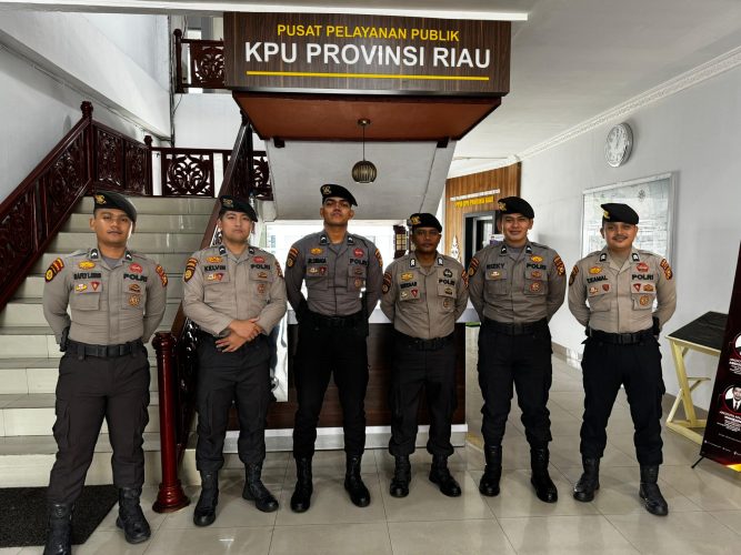 PEKANBARU – Satgas Preventif Subsatgas PAM OMP LK-2024 melakukan pengamanan di kantor penyelenggara Pilkada yakni Kantor KPU Riau, Jum’at (4/10).