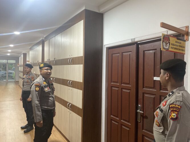 PEKANBARU – Satgas Preventif Sub Satgas PAM melaksanakan kegiatan pengamanan dikantor penyelenggara Pilkada yakni Kantor KPU Provinsi Riau Kantor Bawaslu Provinsi Riau, Selasa (8/10).