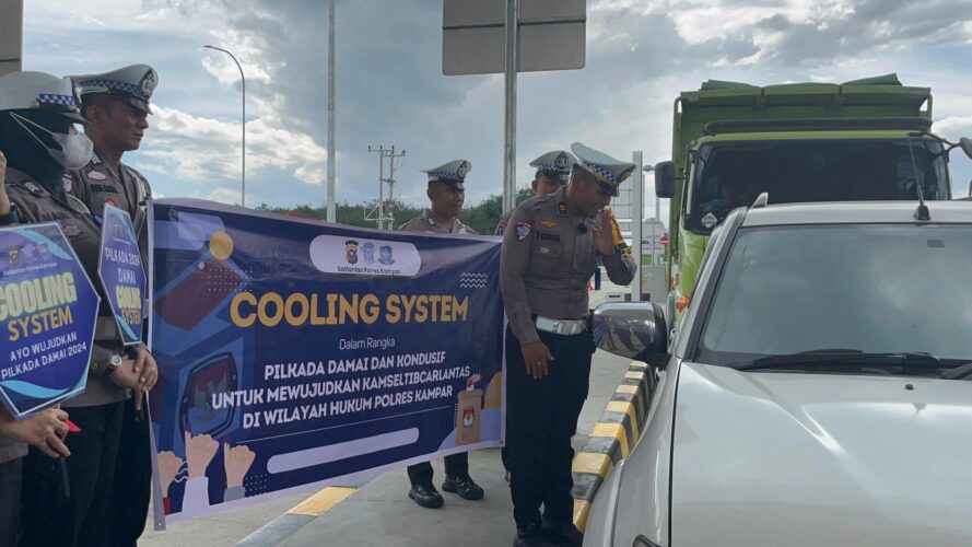 KAMPAR – Satlantas Polres Kampar mengadakan kegiatan kampanye keselamatan dan cooling system Pilkada Damai 2024, Sabtu (19/10).
