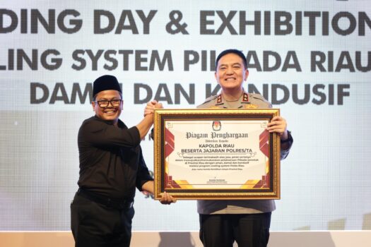 PEKANBARU – Komisi Pemilihan Umum dan Bawaslu Provinsi Riau memberikan penghargaan kepada Kapolda Riau, Irjen Mohammad Iqbal dan jajaran. Penghargaan diberikan atas suksesnya Pilkada Riau 2024 lalu.