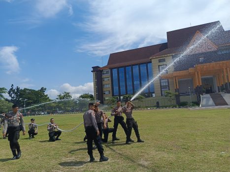 Dalam latihan yang digelar anggota Ditsamapta Polda Riau melaksanakan simulasi pengamanan, pengendalian massa, serta keterampilan dalam menangani situasi darurat.