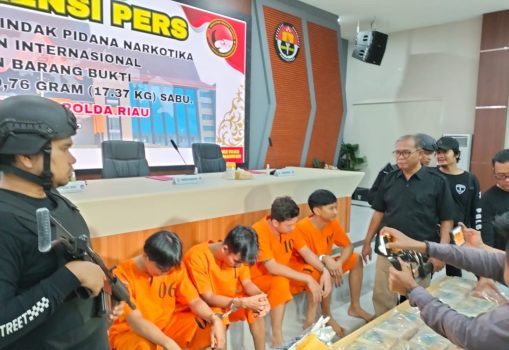 PEKANBARU – Direktorat Reserse Kriminal Narkoba Polda Riau berhasil mengungkap jaringan peredaran narkotika internasional dengan barang bukti 17,37 kilogram sabu yang dikemas dalam 18 paket besar.