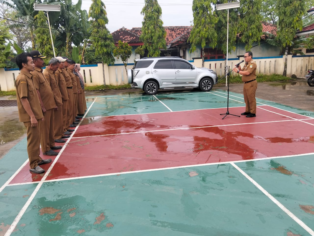 Dalam apel tersebut, Mulyadi memberikan arahan langsung terkait pelaksanaan tugas mingguan serta evaluasi kinerja perangkat desa.