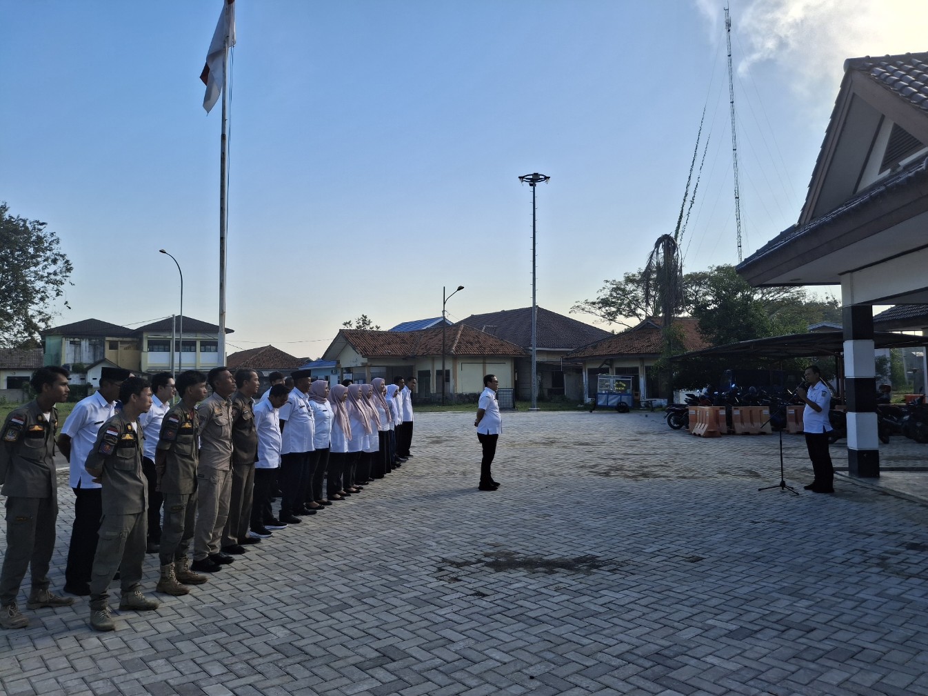 Kabupaten Bekasi,– Camat Pebayuran, Hasim Adnan Adha, S.STP., M.Si., Pimpin apel pagi di Halaman Kantor Kecamatan Pebayuran, Rabu (2/7/2025).