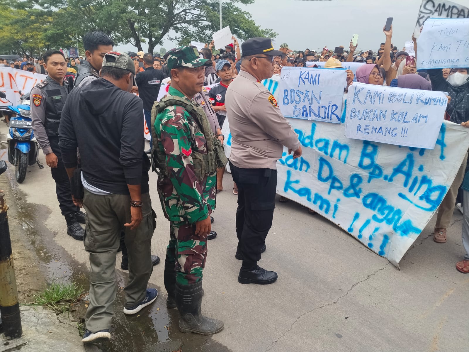 Dalam aksi tersebut, Umar salah Seorang warga menyampaikan sejumlah tuntutan kepada pihak pengembang, di antaranya perbaikan drainase saluran air di lingkungan perumahan, pengadaan pompa air, serta perbaikan jalan pascabanjir yang dinilai merugikan masyarakat.