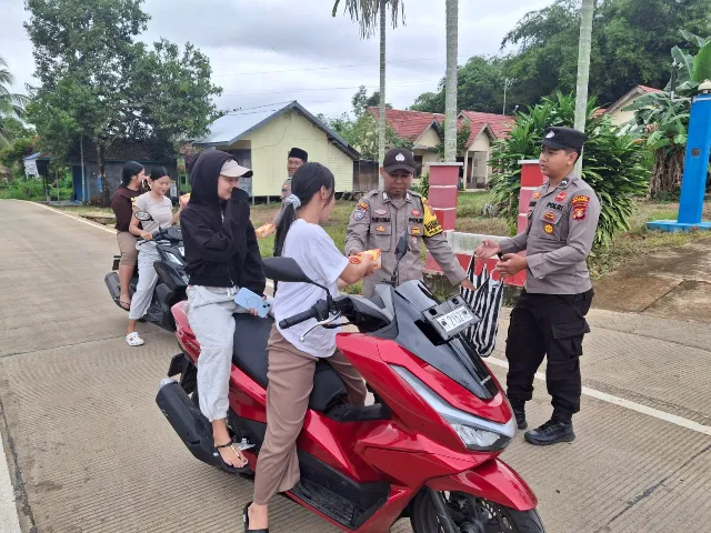 Sebanyak 40 kotak takjil dibagikan kepada para pengguna jalan dan warga sekitar yang melintas. Dengan senyum dan sapaan hangat, personel kepolisian menyapa satu per satu masyarakat, menciptakan momen kebersamaan yang sederhana namun penuh makna di Bulan Suci Ramadhan 1447 Hijriah.