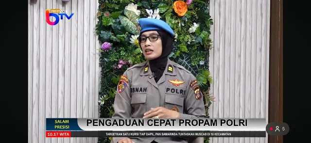 Kegiatan yang dimulai pada pukul 10.00 WITA tersebut menghadirkan narasumber IPTU Risnah selaku Kaurtrimlap Subbagyanduan Bidpropam Polda Kaltim, dengan dipandu oleh host BTV, Lili Hariyanti. Talkshow ini mengangkat tema “Sistem Pelaporan Pengaduan Cepat Propam Polri di Polda Kaltim” sebagai upaya memberikan pemahaman kepada masyarakat terkait mekanisme pelaporan terhadap dugaan pelanggaran anggota Polri.