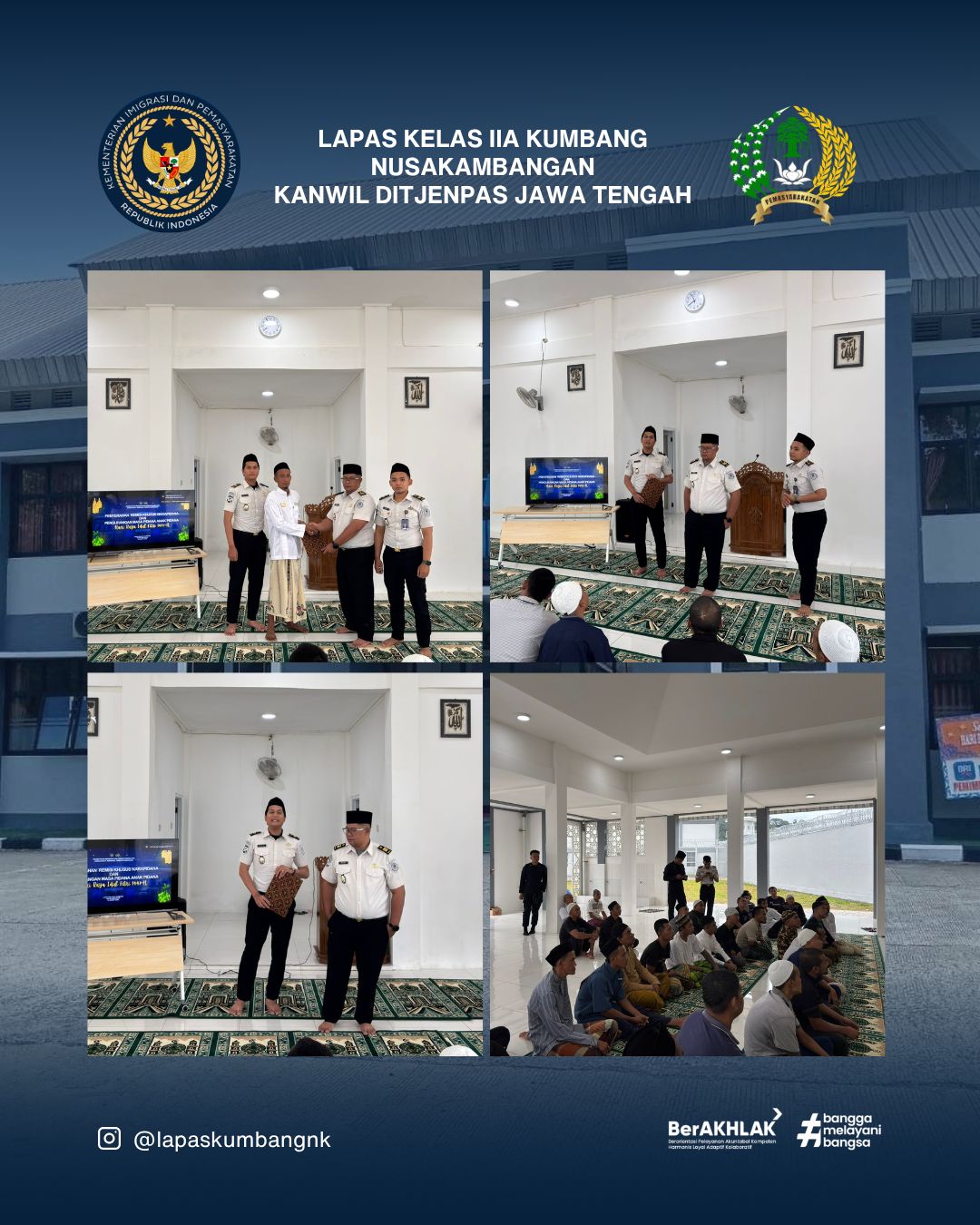 NUSAKAMBANGAN, Haloterkini.com – Lapas Kelas IIA Kumbang melaksanakan kegiatan pemberian Remisi Khusus Hari Raya pada hari Sabtu (21/3). Kegiatan yang dipimpin oleh Kepala Seksi Binaan dan Pembinaan Masyarakat (Kasi Binadik) bersama pejabat struktural lainnya berjalan tertib, aman, dan kondusif.