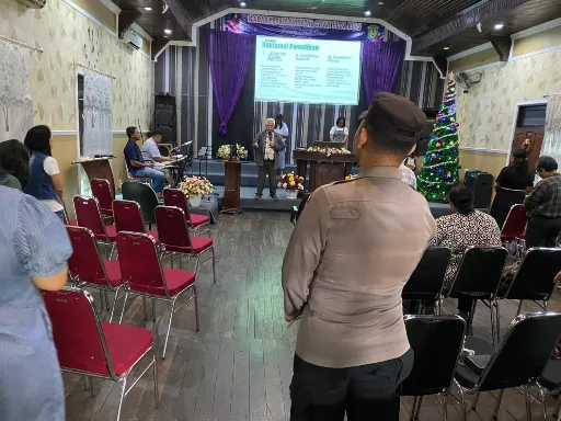 Dengan langkah sigap dan ramah, para polisi ini tidak hanya memantau situasi sekitar gereja, tetapi juga berinteraksi hangat dengan jemaat yang hadir. Mereka memeriksa lingkungan ibadah secara menyeluruh, memastikan tidak ada potensi gangguan yang mengancam ketenangan doa dan puji-pujian. “Kami hadir untuk memberikan rasa aman, sehingga umat bisa fokus beribadah dengan hati tenang,” ujar Aiptu Iwan Dedy, yang memimpin giat pengamanan ini. Sentuhan humanis seperti salam hormat dan obrolan ringan dengan pendeta serta warga setempat, langsung menyentuh hati para hadirin, memperkuat ikatan kebersamaan antara polisi dan masyarakat.